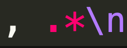 So I inputted the text into Sublime text editor. Then I used a Regular expression to select the pattern. my pattern is any character (with any number of occurrences) after a comma and followed by a new line.